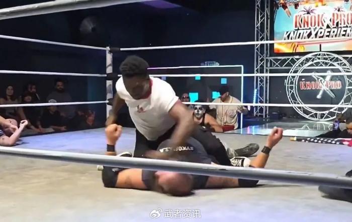 武者网讯 当地时间8月23日,在美国洛杉矶举行的一场职业摔角表演节目中,前UFC轻重量级冠军昆顿·杰克逊(Quinton Jackson)的儿子拉贾·杰克逊(Raja Jackson)突然冲上擂台,对摔跤手“Syko Stu”斯图尔特·史密斯(Stuart Smith)持续殴打致对方昏迷。
